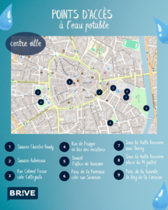La ville de Brive met à disposition des points d’eau potable gratuits et accessibles pour se rafraichir, notamment en période de canicule.